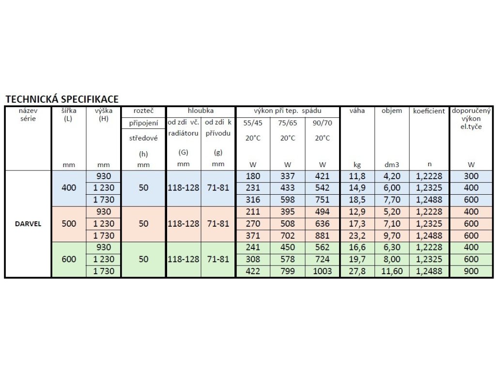 • 500 × 930 mm, výkon 395 W, vykurovacia tyč 400 W