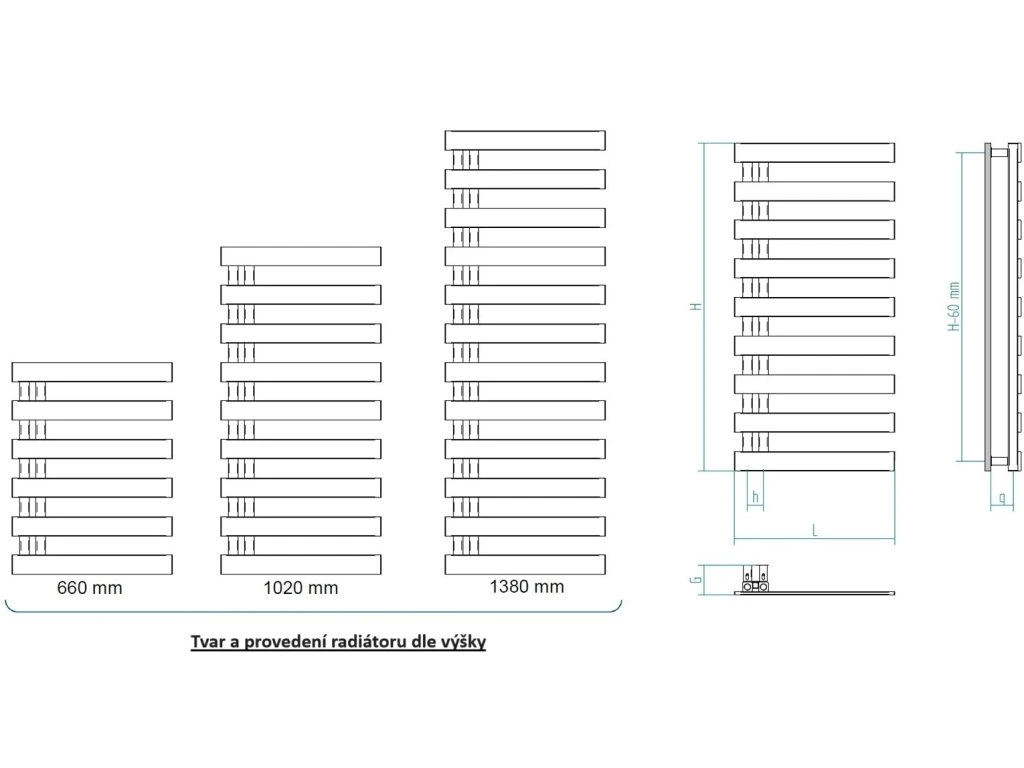 Radiátory sú dodávané BEZ vykurovacej tyče, za rozmerom je iba uvedený vhodný výkon tyče pre patričný rozmer.