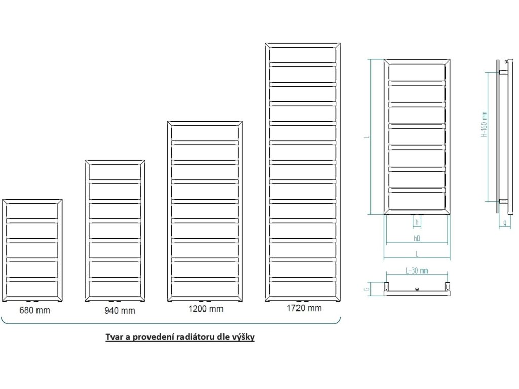 Radiátory sú dodávané BEZ vykurovacej tyče, za rozmerom je iba uvedený vhodný výkon tyče pre patričný rozmer.