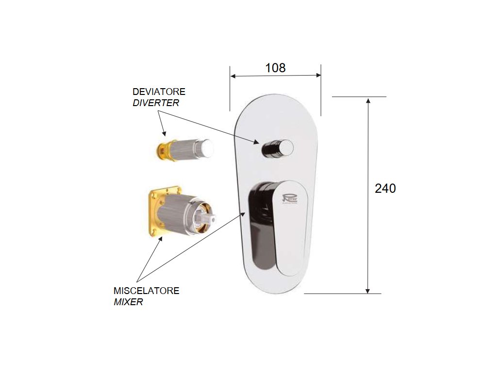 • Sprchová batéria podomietková, bez príslušenstva, s prepínačom, 2 výstupy