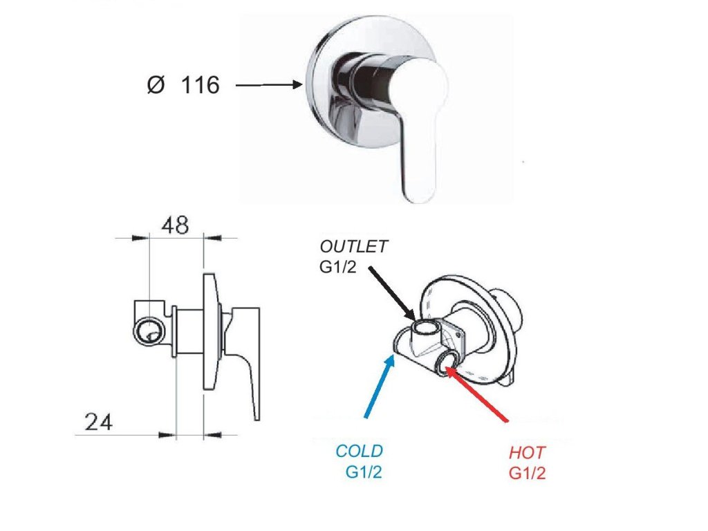 Podomietková batéria bez prepínača PIRA 30 . Jednocestný podomietkový modul je vhodný najmä do spŕch v kombinácii s hlavovou sprchou. Okrúhly tvar sa skvele hodí k štvrťkruhovým sprchovacím kútom. Súčasťou sprchovej batérie je aj podomietkový modul , teda časť batérie patriaca do omietky. Čo výrazne uľahčuje montáž.