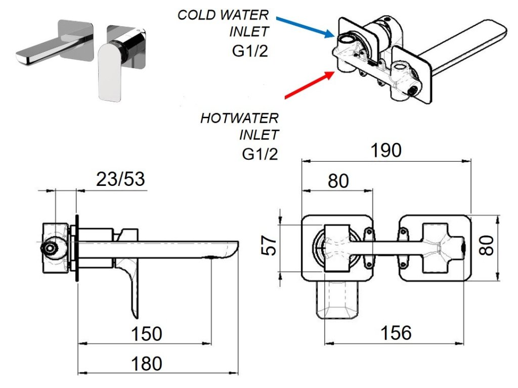 Podomietková umývadlová batéria ARNO 15P z ponuky spoločnosti HOPA. Podomietkové batérie skvele vyzerajú, k tomu nemajú toľko záhybov a sú vzdialené od umývadla, nevyžadujú teda toľko čistenia . Výtokové ramienko umiestnené vedľa pákového ovládania má dĺžku 18 cm . Batéria sa umiestňuje horizontálne.