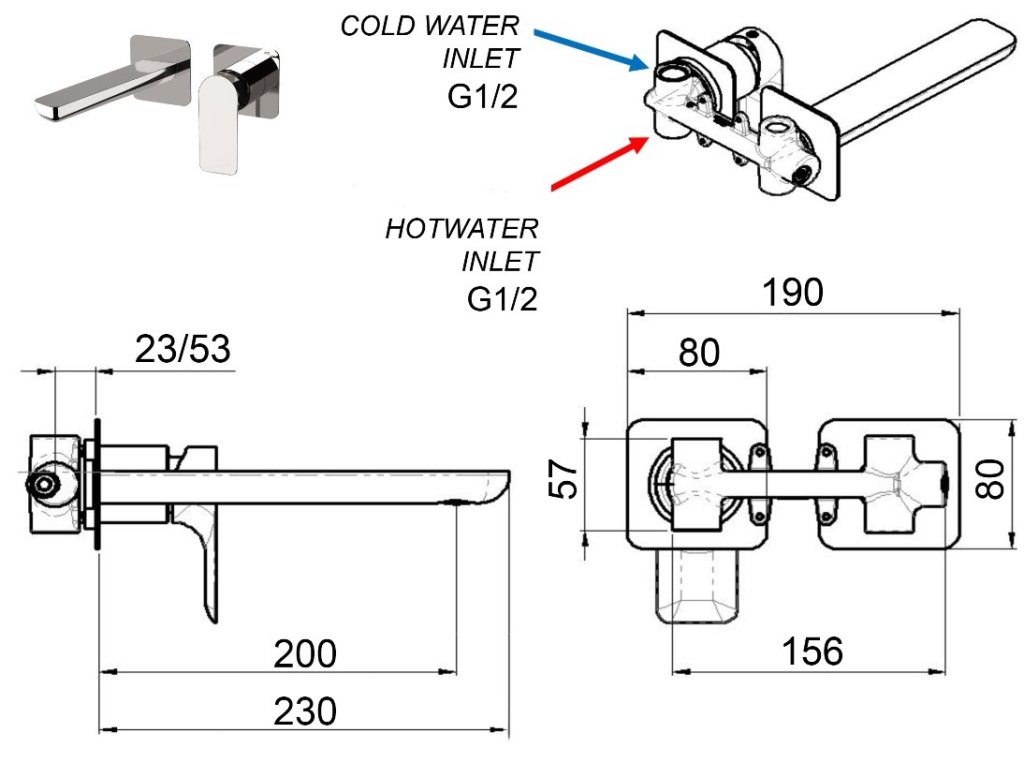Podomietková umývadlová batéria ARNO 15PL z ponuky spoločnosti HOPA. Podomietkové batérie skvele vyzerajú, k tomu nemajú toľko záhybov a sú vzdialené od umývadla, preto nevyžadujú toľko čistenia . Výtokové ramienko umiestnené vedľa pákového ovládania má dĺžku 23 cm . Batéria sa umiestňuje horizontálne.