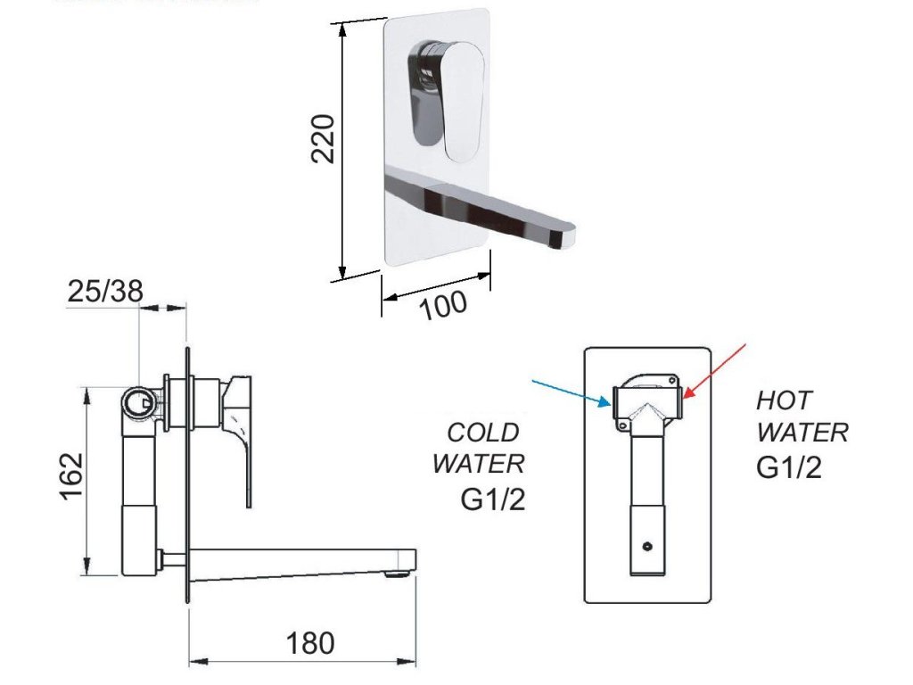 Netradičná podomietková umývadlová batéria FONTI 14 od popredného výrobcu vodovodných batérií. Jedinečná je vo svojej konštrukcii - na výšku . Výtokové ramienko je umiestnené v spodnej časti a pákové ovládanie je nad ním. Jednoduchú montáž umožňuje podomietkový modul, ktorý je súčasťou batérie.