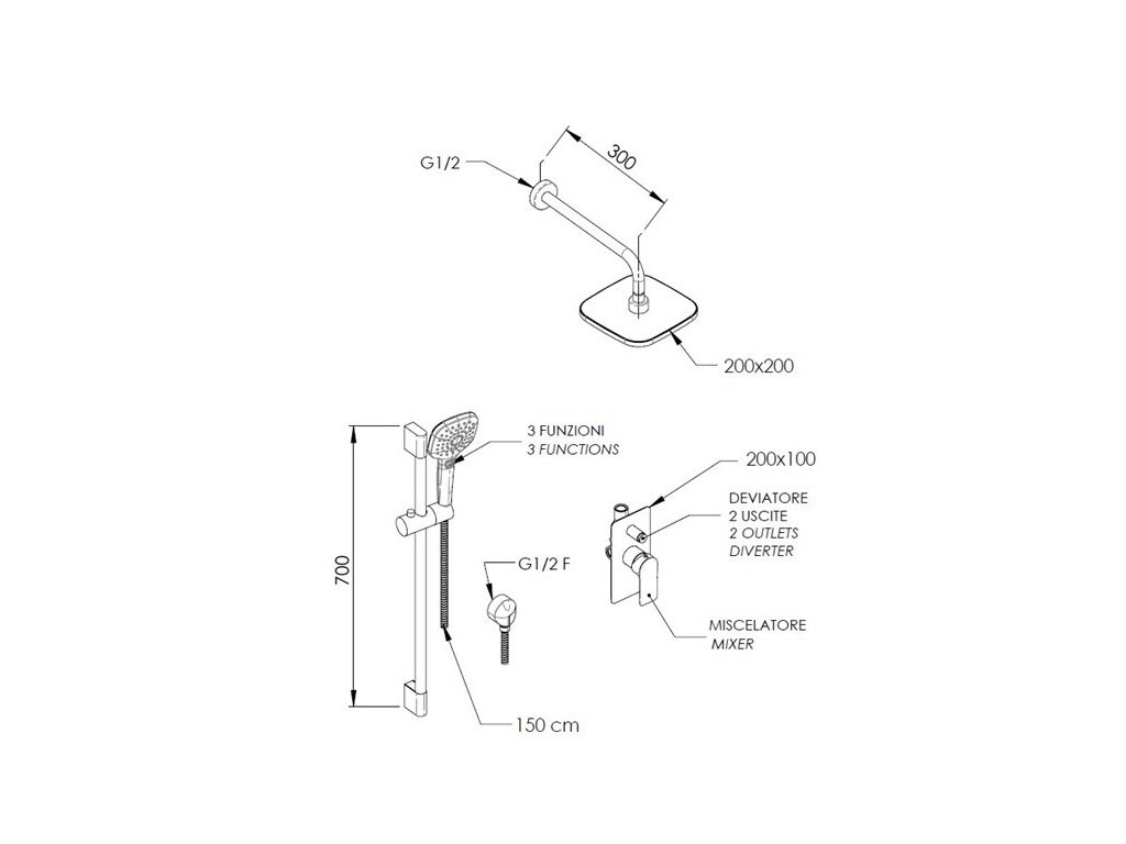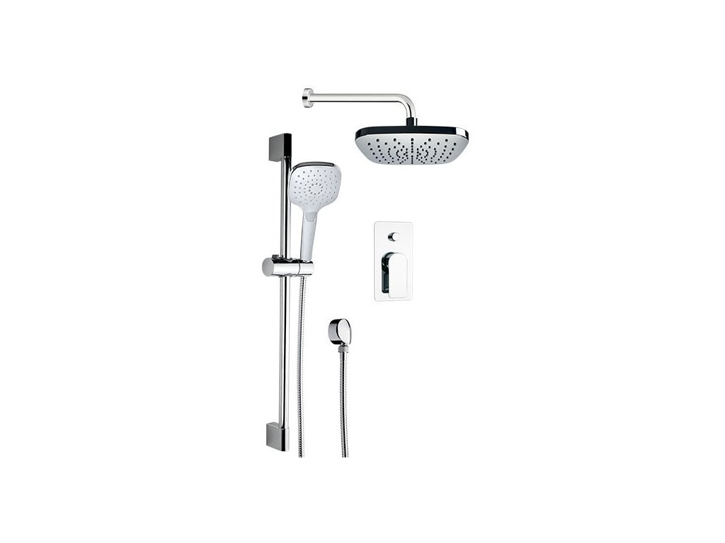 Jedinečný podomietkový set s príslušenstvom . Kompletné riešenie pre váš sprchovací kút. Set obsahuje podomietkovú batériu, hlavovú sprchu s držiakom, vývod zo steny s držiakom, ručnú sprchu a hadicu.