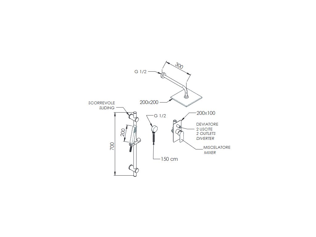 Jedinečný podomietkový set s príslušenstvom . Kompletné riešenie pre váš sprchovací kút. Set obsahuje podomietkovú batériu, hlavovú sprchu 20 x 20 cm s držiakom, vývod zo steny s držiakom, ručnú sprchu a hadicu.