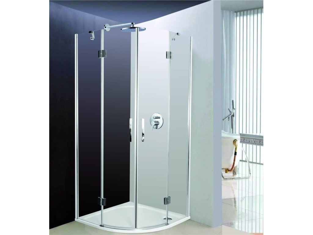 Elegantný rad sprchových kútov predstavuje štvrťkruhový celosklenený pántový sprchovací kút VIVEIRO NEW, ktorý podčiarkuje výnimočnosť modernej kúpeľne. Jemné línie obohacujú kovové závesy s bezpečnostným čírym sklom o sile 6 mm. Patria medzi sprchové kúty otvárajúce sa do priestoru a majú aretáciu v základnej zatvorenej polohe.