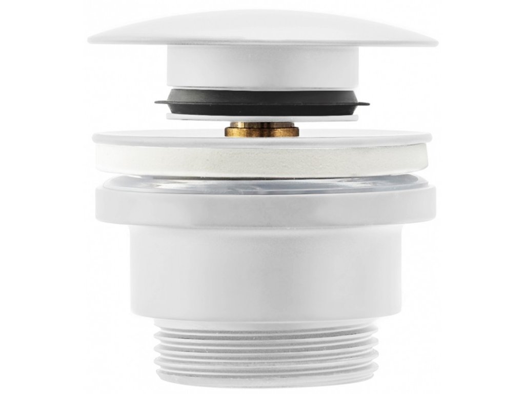 Kvalitný umývadlový výpust s click-clack zátkou v modernej bielej farbe . Výpusť je s veľkou zátkou a je vyrobená z kvalitnej mosadze . Click-clack zátka je univerzálna , hodí sa ako pre umývadlá s prepadovým otvorom, tak pre tie bez otvoru pre prepad . Vďaka špeciálnemu výrobnému procesu je výpust chránený proti korózii, poškodeniu farieb a zafarbeniu.