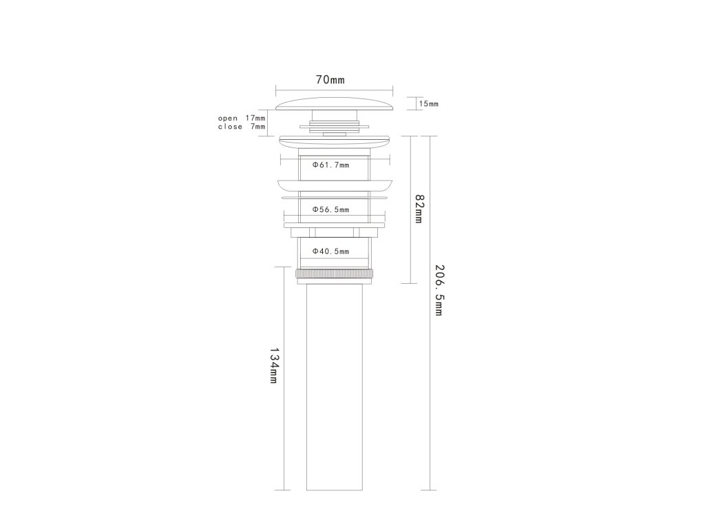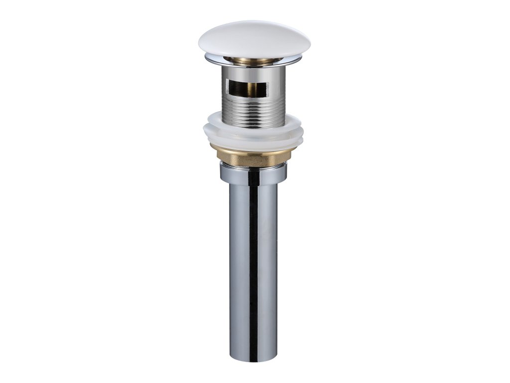 Umývadlový výpust s click-clack systémom. Výpust je s bielou keramickou zátkou a je určený pre umývadlá s prepadom.