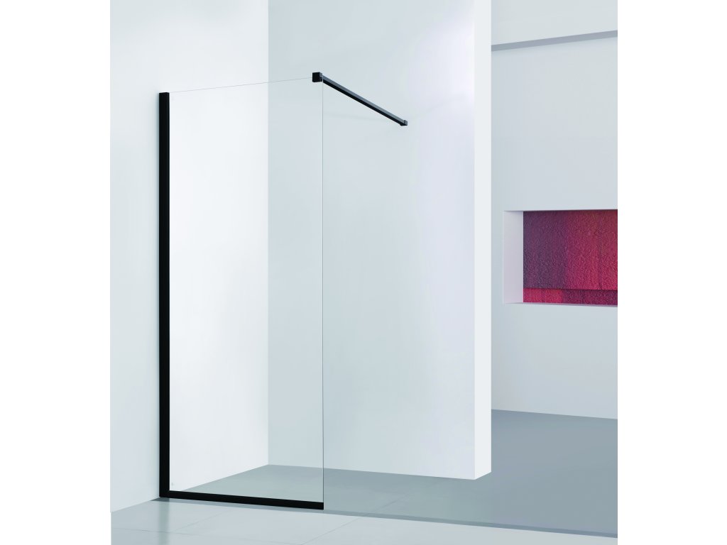 Walk-in sprchová zástena LAGOS BLACK s rámom a rozpernou tyčou v čiernej farbe, ponúka jednoduché a pritom praktické riešenie bez použitia pohyblivých dverí, ale s maximálnym vstupom. Dá sa osadiť ako na sprchové vaničky, tak aj priamo na podlahu. Zásteny sú vyrobené z bezpečnostného skla.
