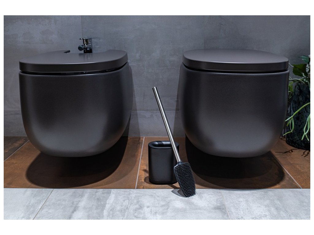 Kvalitná WC kefa z čierno lakovanej ocele. Štetka je tvarovaná pre perfektné čistenie wc so systémom rimless . Praktický a pekný doplnok každej kúpeľne a wc.