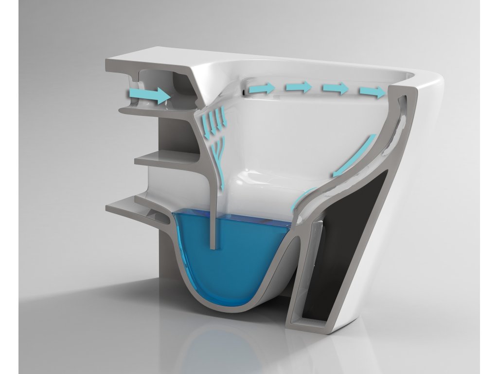 Systém RIMLESS je revolučný bezokruhovým splachovaním exkluzívne pri tomto závesnom WC. Tradičné WC záchody majú pod okrajom veľmi ťažko prístupné miesta, v ktorých sa zhromažďujú nečistoty a baktérie. S inovatívnou technológiou RIMLESS bol tento problém vyriešený – zo záchodovej misy bol odstránený vnútorný „golier“ a teda aj ťažko prístupné miesta. Teraz pri splachovaní a ľahko sa tiež dostane ku všetkým vnútorným plochám, misa je tak vždy dokonale čistá. Montážna sada nie je súčasťou balenia.