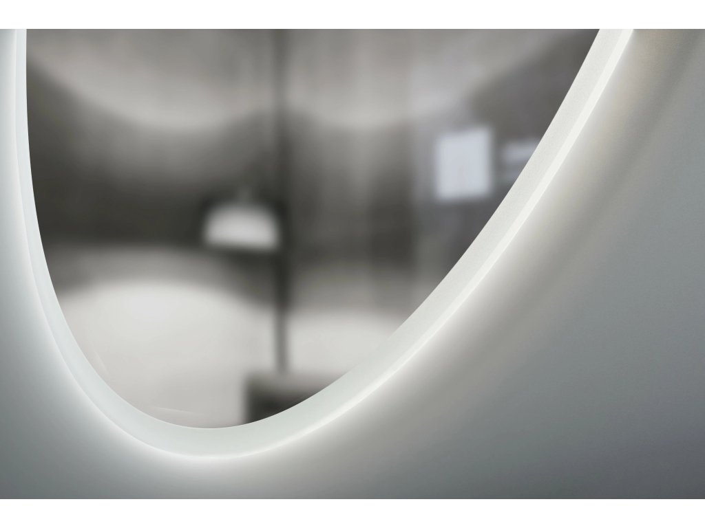 Okrúhle zrkadlo s LED osvetlením BEBRA , s obvodovým matným pásom osvetleným LED diódami i, ktoré zároveň osvetľujú stenu za zrkadlom. Zrkadlo bez vypínača.