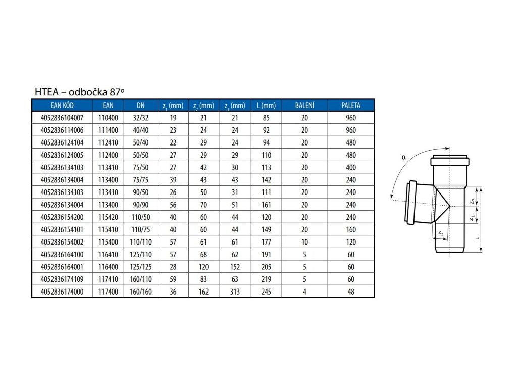 HT PLUS HTEA odpadový kohút DN110/110, 87°, PP, sivý, 115400