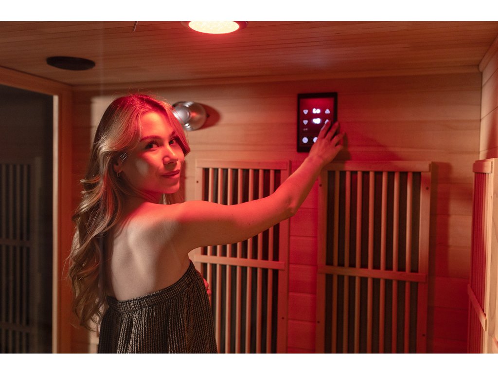 Okamžite po vstupe pocítite teplo, ktoré vytvára uhlíkový infračervený ohrievač - infražiarič. Vlnová dĺžka tohto tepla umožní infračerveným lúčom preniknúť do vašej pokožky a zohriať telo v podkoží. Väčšina ľudí má tendenciu začať sa potiť po 20 minútach pobytu v saune, hoci tento čas sa s intenzitou saunovania skracuje.