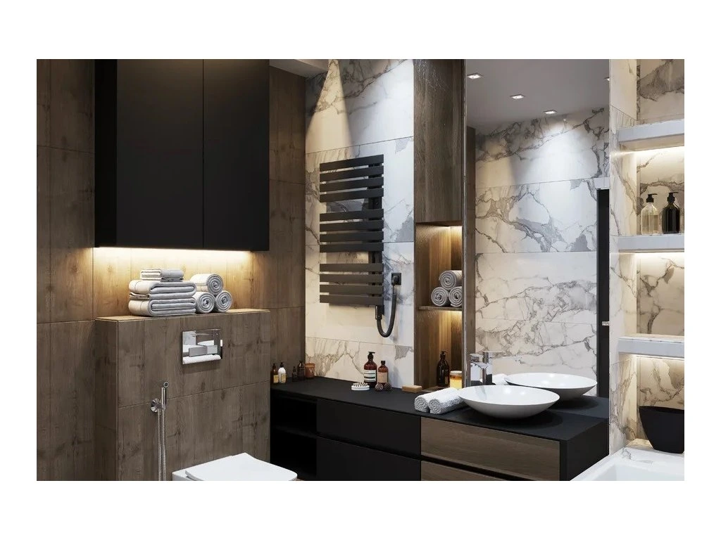 Instalprojekt Kúpeľňový radiátor POP STAR čierna farba Farba - Čierna , Odporúčaná vykurovacia tyč (W) - 600 W, Rozmer A - 50 cm, Rozmer C - 120 cm, Skutočný rozmer radiátora (v mm) - 500 x 1190 mm RADPOP501231