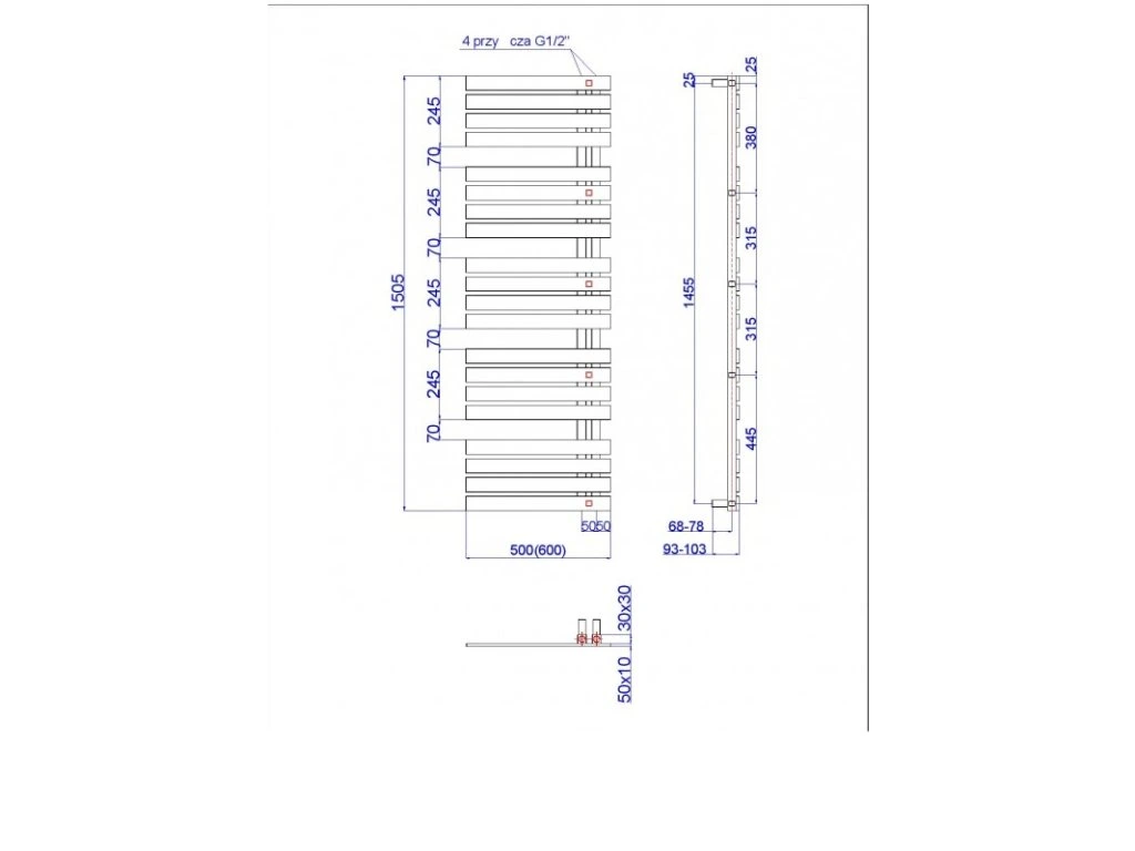 - 500 × 1505 mm, výkon 629 W, vykurovacia tyč 600 W