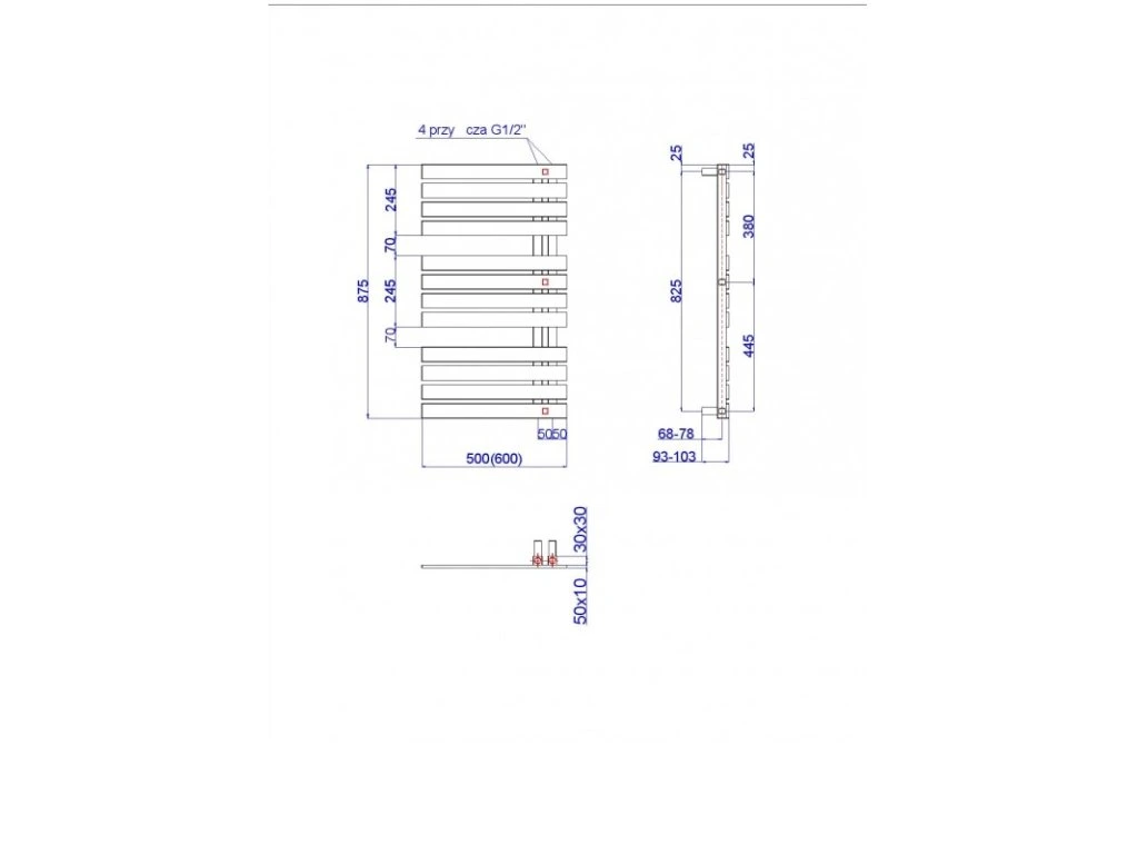 - 500 × 875 mm, výkon 341 W, vykurovacia tyč 400 W