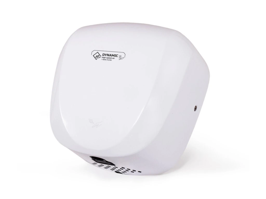 DYNAMIC je jediný sušič rúk z radu Jet Dryer s filtrom HEPA. Vďaka vysokovýkonnému motoru v priestrannom kovovom kryte je tento sušič ideálny do priestorov s vysokou intenzitou prevádzky. Ohrev vzduchu sa automaticky prepína podľa okolitej teploty.