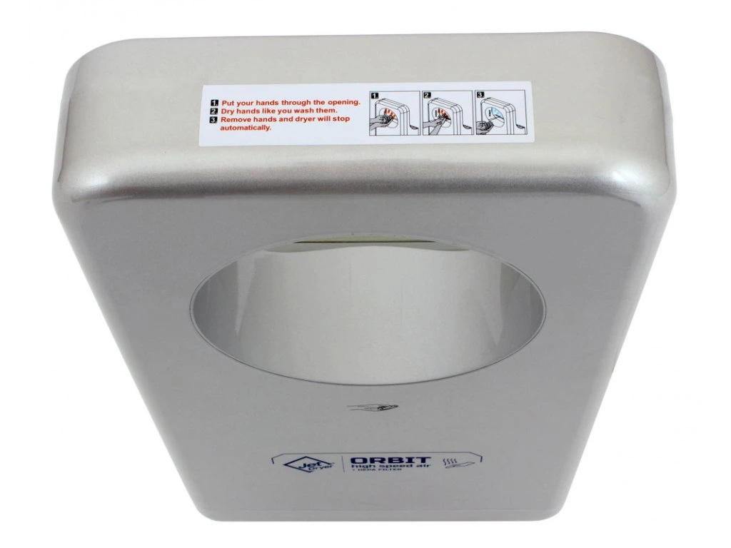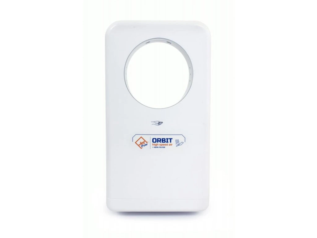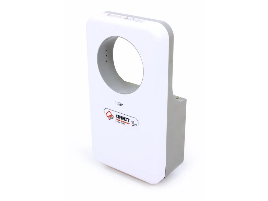 Kruhový dizajn, absorpčný kameň a možnosť použitia na toaletách pre telesne postihnutých robia z Jet Dryer ORBIT úplne jedinečný sušič. Ruky sú vďaka tornádovému efektu suché do siedmich sekúnd. Keďže sa inštaluje vyššie ako iné tryskové sušiče, môžete ho dobre použiť aj v atypických umyvárňach. Rovnako ako ostatné sušiče vám Jet Dryer ORBIT pomôže znížiť prevádzkové náklady a navyše chráni životné prostredie.