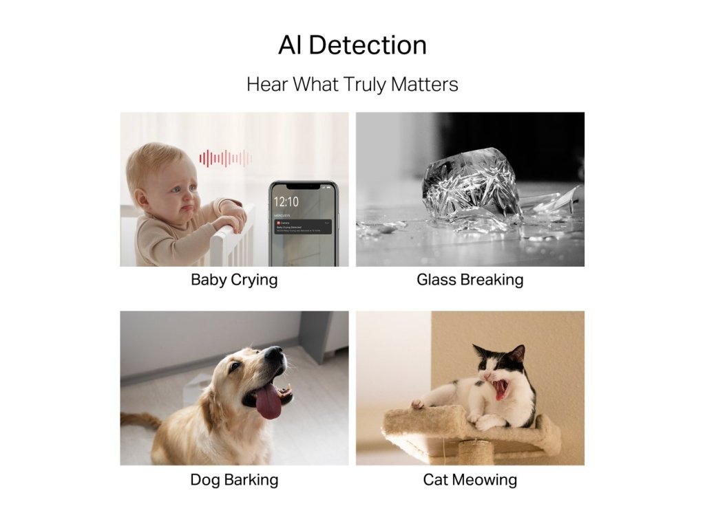 Pokročilá detekcia pohybu a zvuku využíva umelú inteligenciu na presnú identifikáciu osôb, zvierat, vozidiel alebo detského plaču. Vďaka tomu kamera odfiltruje rušivé vplyvy a upozorní vás len na skutočne dôležité udalosti. Rozpozná aj rozbitie skla, štekot alebo mňaučanie domácich zvierat.