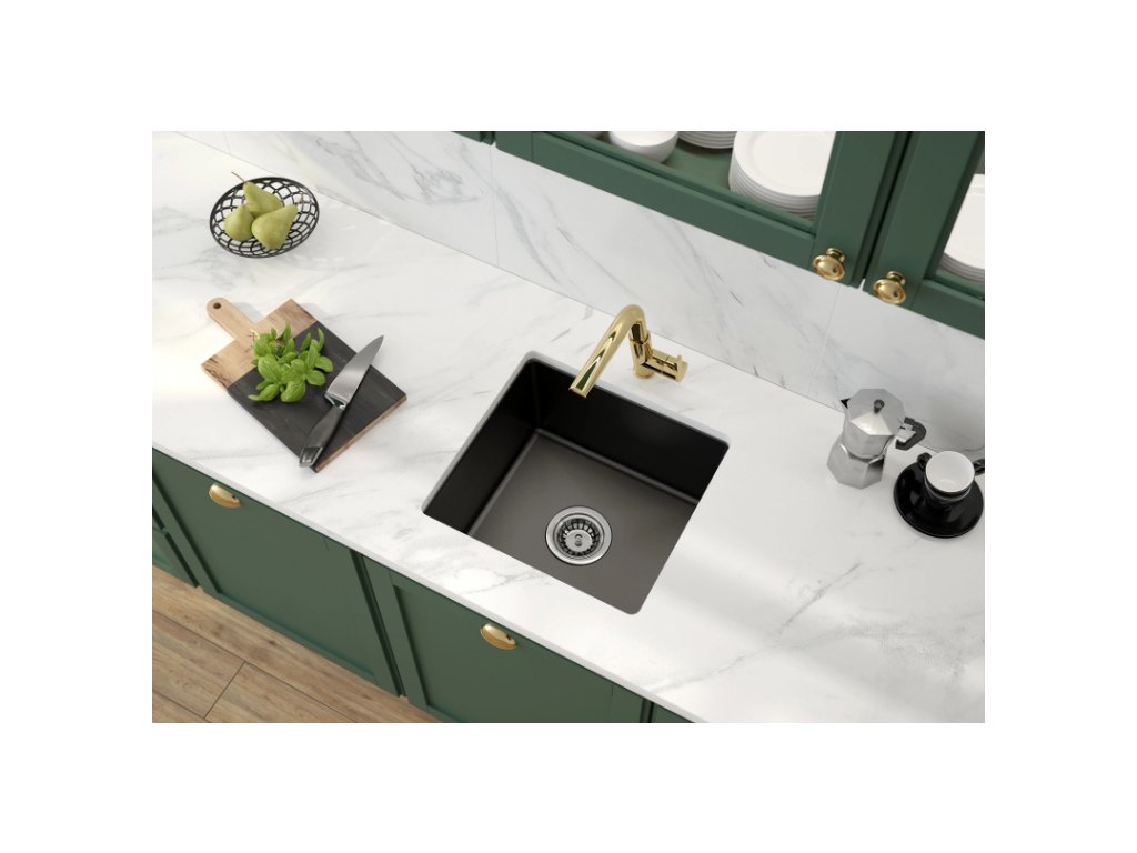 Keramický drez bol vytvorený z vysoko kvalitných surovín prírodného pôvodu. Vďaka tomu je odolný voči vysokým teplotám a rýchlym zmenám teploty. Okrem toho časom nestráca svoju farbu ani lesk a jeho tlmená, estetická farba sa dokonale kombinuje s ostatnými armatúrami. Elegantný drez s jednou miskou je ideálnym riešením pre malé kuchyne a garsónky s prístavbou. Tvrdá a odolná keramika nestráca svoje vlastnosti ani pri dlhodobom používaní.