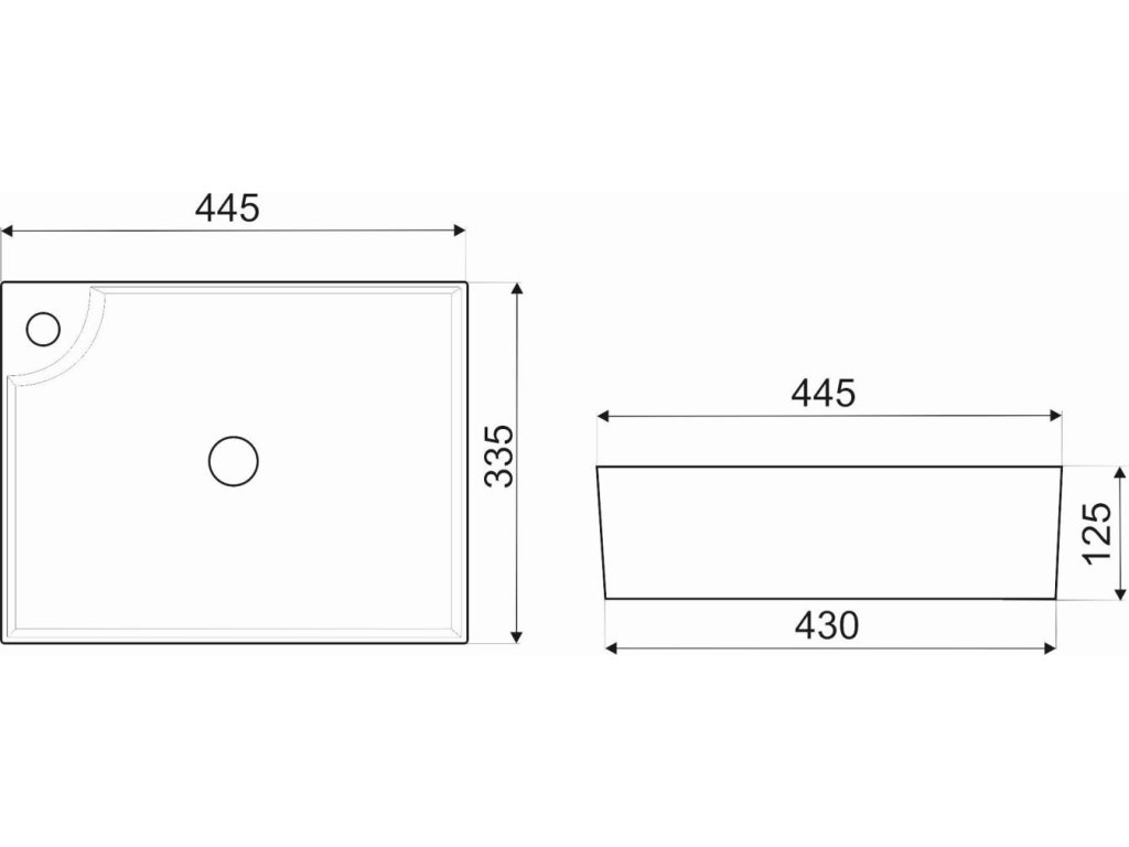- rozmery umývadla - 44,5 x 33,5 x 12,5 cm