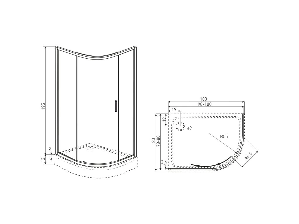 - vrátane bielej akrylovej vaničky s rozmermi 80 x 100 x 13 cm