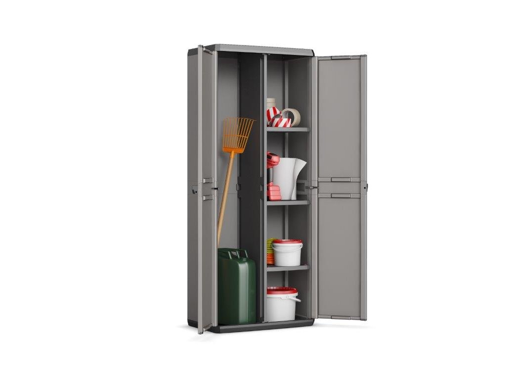 Skriňa Keter Piú Utility Cabinet ponúka praktické riešenie na prehľadné uloženie náradia, čistiacich prostriedkov alebo záhradného vybavenia. Vďaka kombinovanému vnútornému priestoru poskytuje priestor nielen na menšie predmety, ale aj na dlhé náradie, ako sú metly alebo hrable.