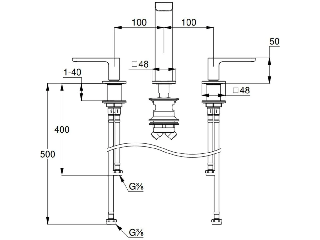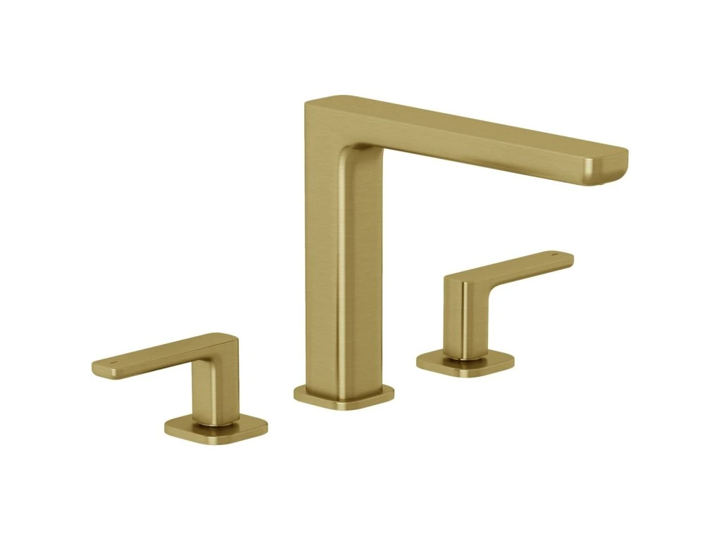 KLUDI RENON umývadlová batéria s výtokom Push-Open, 3-otvorová montáž, brúsené zlato, 42393N075