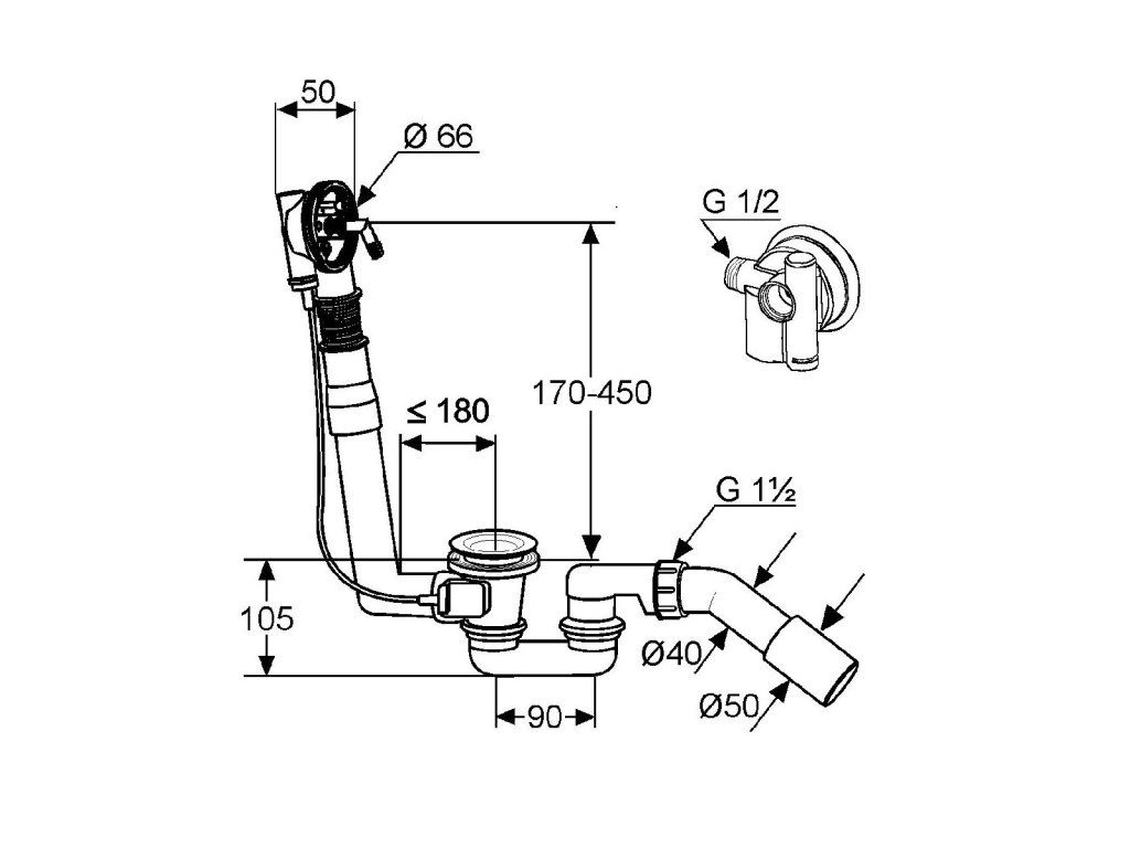 KLUDI ROTEXA súprava odtoku a prepadu vane s plnením, 2131500-00