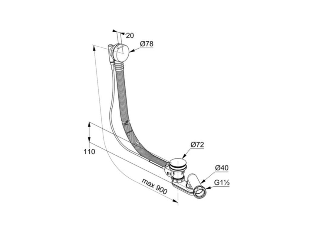 KLUDI ROTEXA vaňová odtoková a prepadová súprava, s bovdenom 850 mm, chróm, 2140905-00