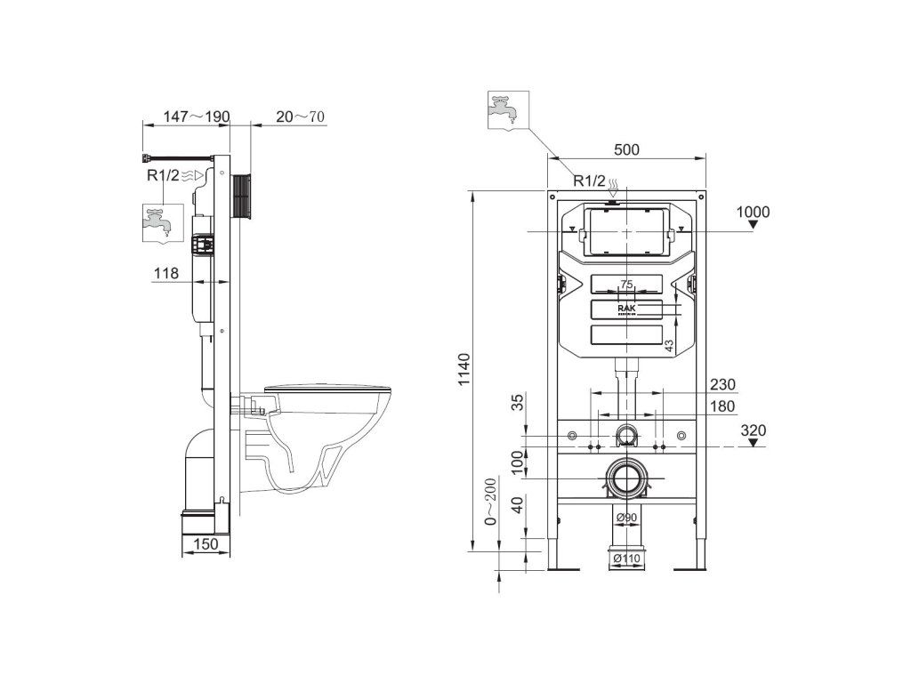 KLUDI UNIFIX nástenná inštalácia pre závesné WC, výška 120 cm, 79101