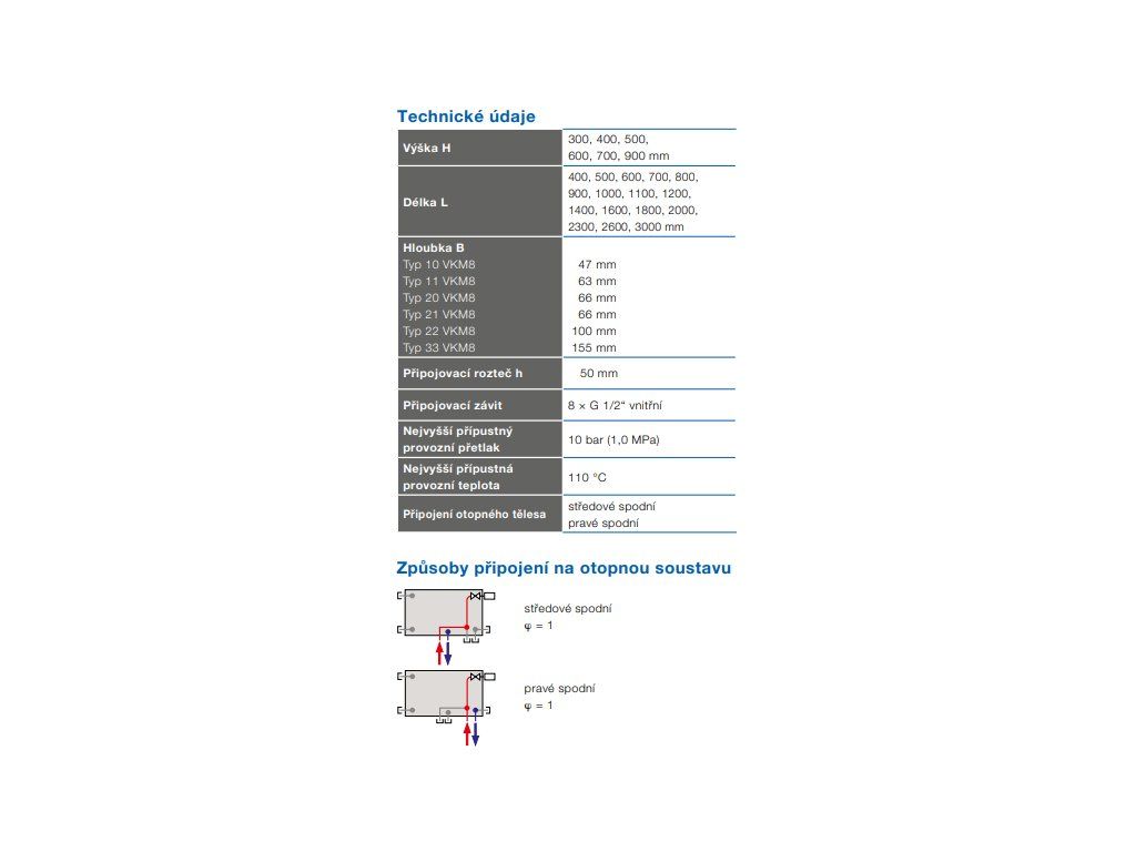 - Typ radiátora: doskový radiátor