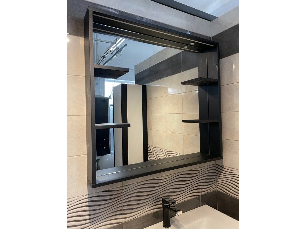 Kúpeľňové zrkadlo Lavedo Broadway Black 90 s policami a LED osvetlením, BRM-90Z