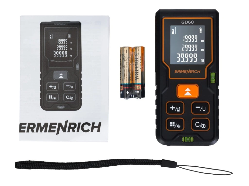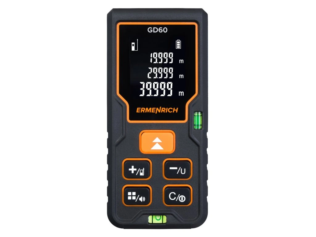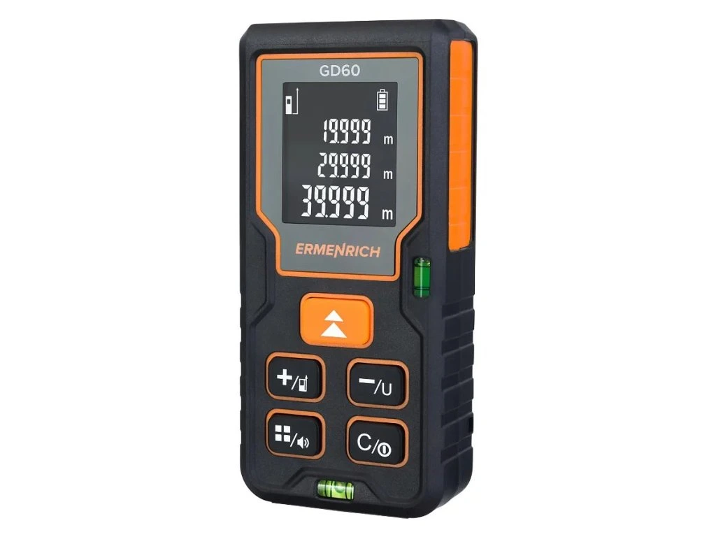 S Ermenrich Reel GD60 môžete určiť vzdialenosti objektov, rozmery plôch a objemy miestností. Používa sa najmä pri stavebných, opravárenských, inštalačných a montážnych prácach. Pomocou neho môžete merať hodnoty od 0,05 do 60 metrov. Prekvapí vás aj funkcia merania plochy a objemu.