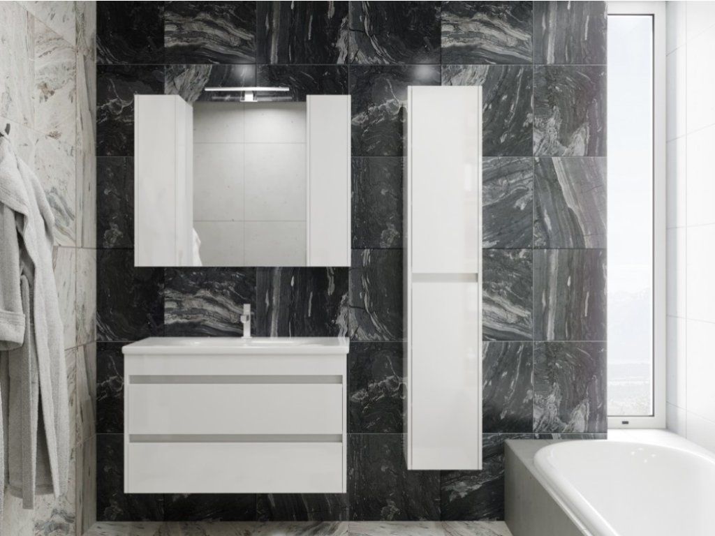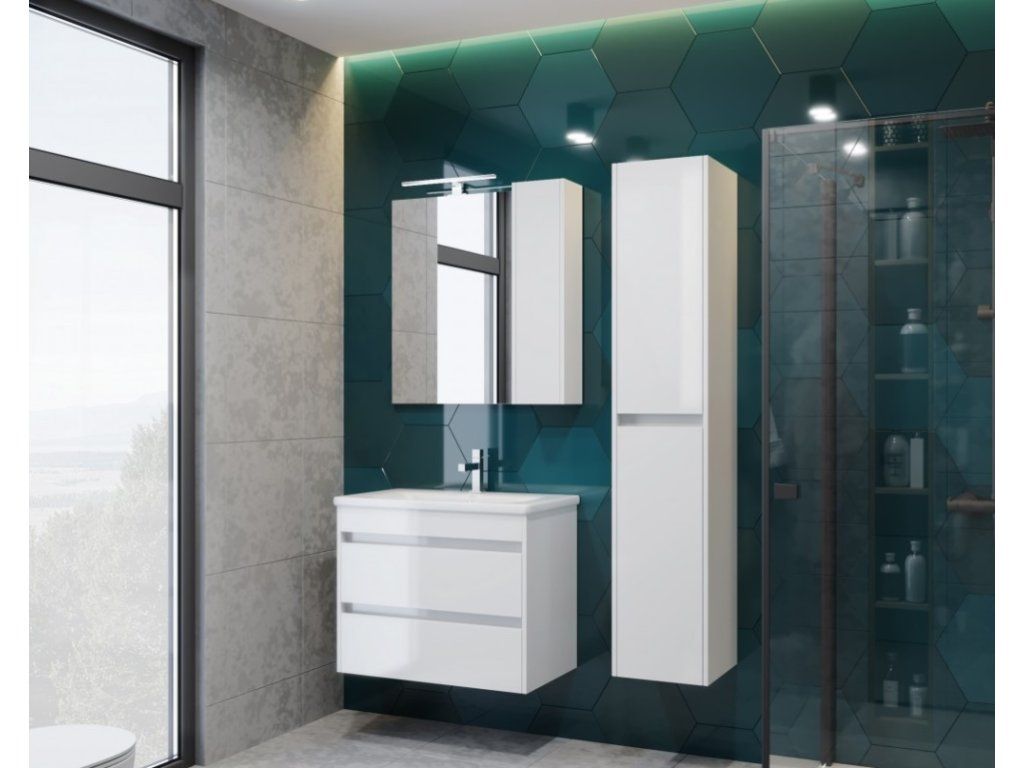 Predstavujeme úplne nový luxusný kúpeľňový nábytok, ktorý poteší každého. Táto absolútne dizajnová skrinka s umývadlom by rozhodne nemala chýbať v žiadnej modernej kúpeľni. Skrinka je vyrobená z drevotrieskovej dosky s hrúbkou 16 mm. Umývadlo, ktoré je súčasťou skrinky, je vyrobené z kvalitnej sanitárnej keramiky. Povrchová úprava je biely lesklý lak. Veľkou výhodou tejto skrinky je jej tiché zatváranie, vďaka ktorému je používanie skrinky absolútne pohodlné. Pocíťte výhody a úložný priestor, ktorý vám táto skrinka poskytne.
