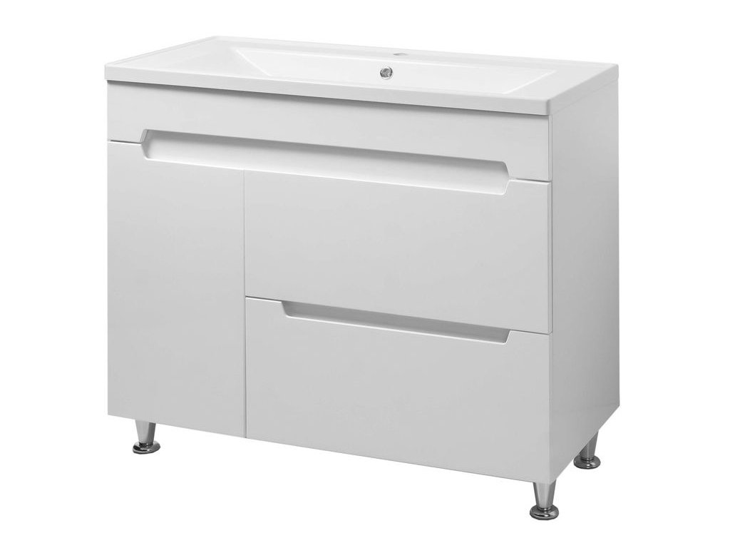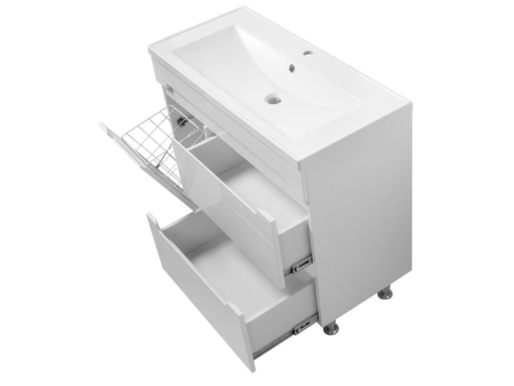 Praktická skrinka s umývadlom a veľkým úložným priestorom nesmie chýbať v žiadnej premyslenej kúpeľni! Kôš na bielizeň (uteráky) ocení každý, kto má rád v kúpeľni poriadok. Priestranné umývadlo z kvalitného mramoru zabezpečí jednoduché používanie po dlhé roky. Celkový dizajn skrinky s vysokým bielym leskom pôsobí veľmi moderne a elegantne, hodí sa do každej kúpeľne.