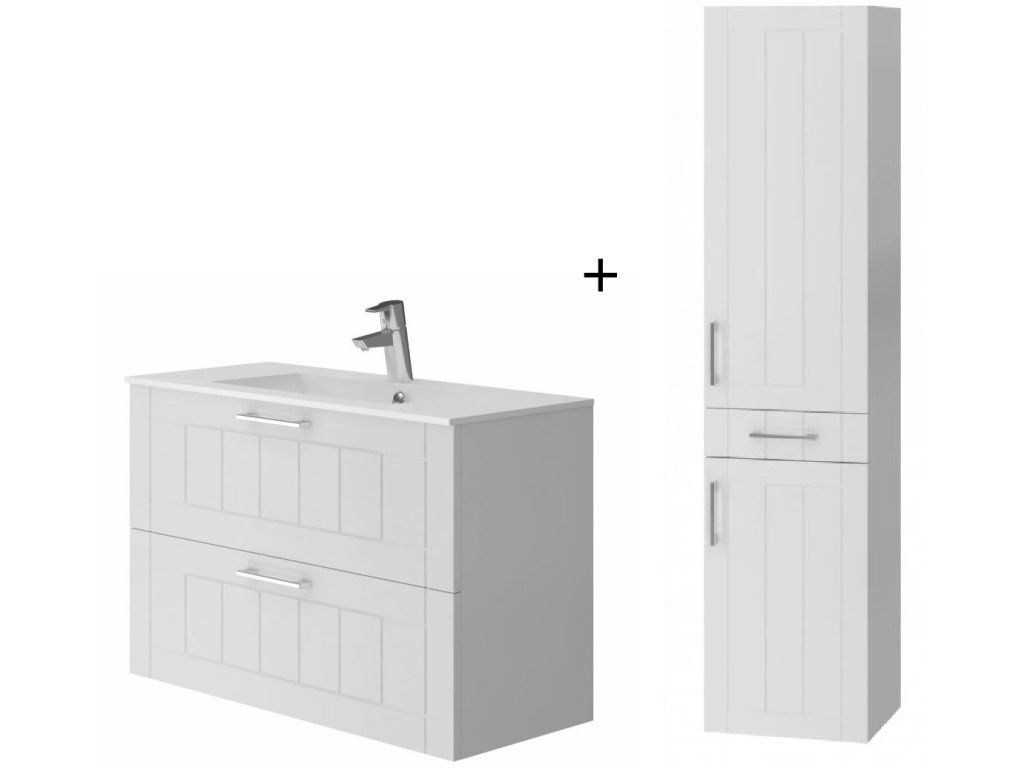 Lavedo Ossy 80 kúpeľňová skrinka s umývadlom a vysokou skrinkou 185 Ossy, biela, OSC-80-OSC80