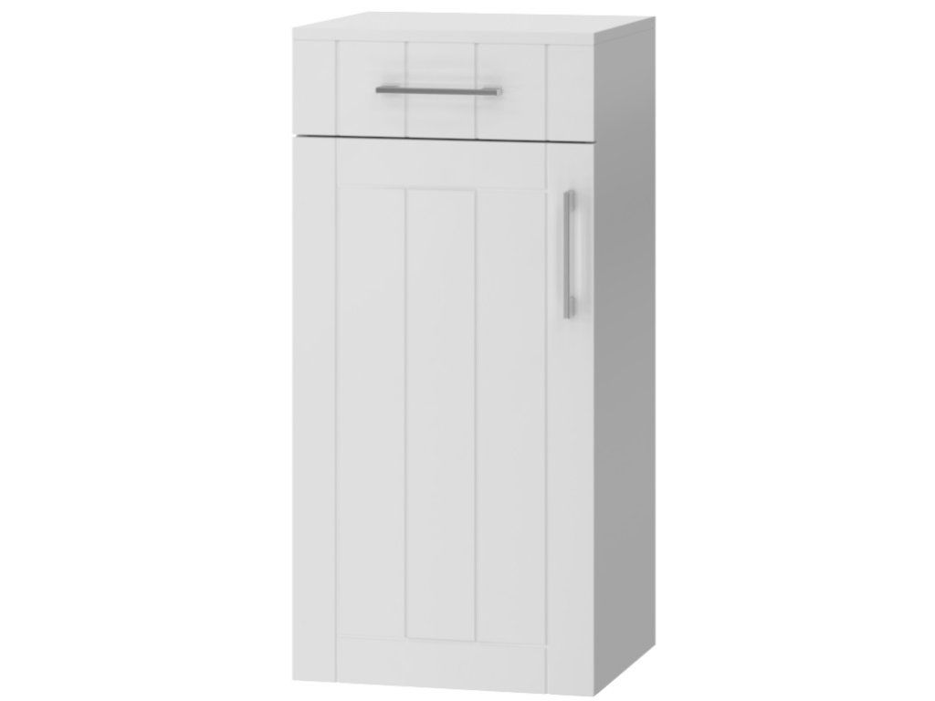 Predstavujeme vám úplne nový luxusný kúpeľňový nábytok, ktorý nadchne každého najmä vďaka svojmu nevšednému dizajnu. Táto absolútne dizajnová skrinka by rozhodne nemala chýbať v žiadnej modernej kúpeľni. Skrinka obsahuje jednu zásuvku a dve police, ktoré vám poskytnú dostatok úložného priestoru. Úchyty sú minimalistické, a preto nenarúšajú celkový vzhľad a dizajn skrinky. Veľkou výhodou tejto skrinky je jej tiché zatváranie, vďaka ktorému je používanie skrinky absolútne pohodlné. Pocíťte výhody a úložný priestor, ktorý vám táto skrinka poskytne.