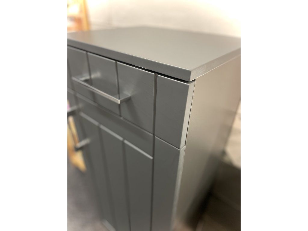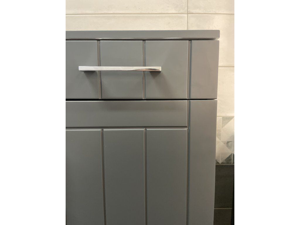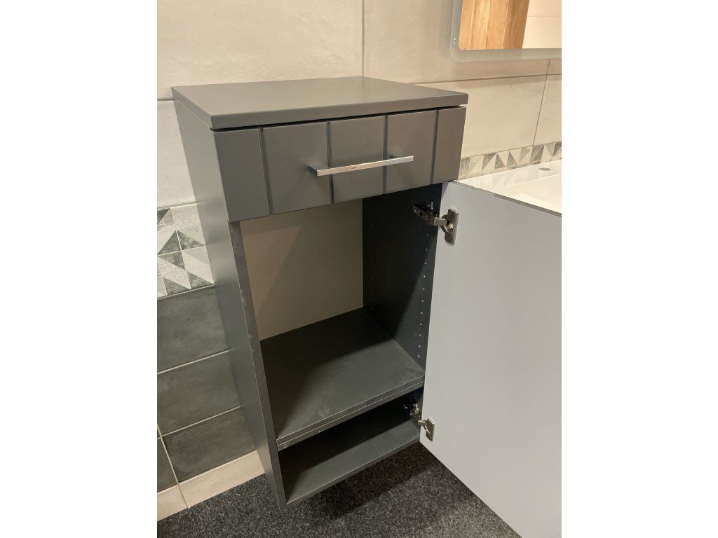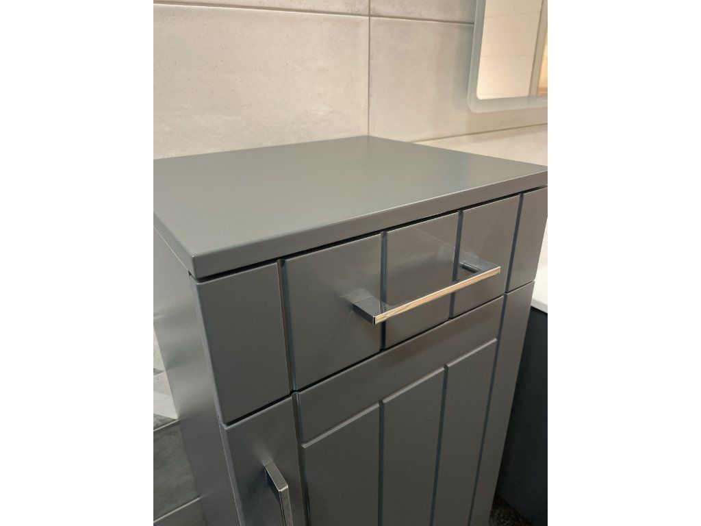 Predstavujeme vám úplne nový luxusný kúpeľňový nábytok, ktorý nadchne každého najmä vďaka svojmu nevšednému dizajnu. Táto absolútne dizajnová skrinka by rozhodne nemala chýbať v žiadnej modernej kúpeľni. Skrinka obsahuje jednu zásuvku a dve police, ktoré vám poskytnú dostatok úložného priestoru. Úchyty sú minimalistické, a preto nenarúšajú celkový vzhľad a dizajn skrinky. Veľkou výhodou tejto skrinky je jej tiché zatváranie, vďaka ktorému je používanie skrinky absolútne pohodlné. Pocíťte výhody a úložný priestor, ktorý vám táto skrinka poskytne.