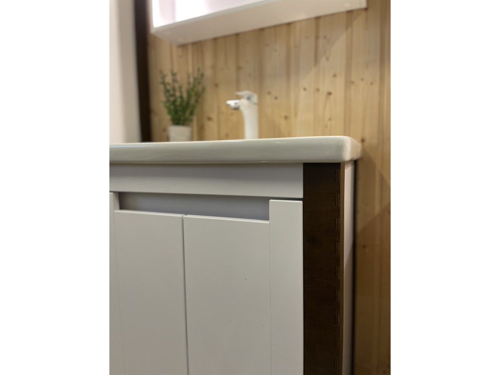 Predstavujeme úplne nový luxusný kúpeľňový nábytok, ktorý poteší každého. Táto absolútne dizajnová skrinka s umývadlom by rozhodne nemala chýbať v žiadnej modernej kúpeľni. Skrinka je vyrobená z drevotrieskovej dosky s hrúbkou 16 mm. Umývadlo, ktoré je súčasťou skrinky, je vyrobené z kvalitnej sanitárnej keramiky. Povrchová úprava je biela farba pokrytá matným lakom. Veľkou výhodou tejto skrinky je jej tiché zatváranie, vďaka ktorému je používanie skrinky absolútne pohodlné. Pocíťte výhody a úložný priestor, ktorý vám táto skrinka poskytuje.