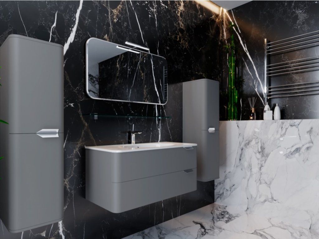 Predstavujeme úplne nový luxusný kúpeľňový nábytok, ktorý poteší každého. Táto absolútne dizajnová skrinka s umývadlom by rozhodne nemala chýbať v žiadnej modernej kúpeľni. Skrinka je vyrobená z 16 mm MDF dosky. Umývadlo, ktoré je súčasťou skrinky, je vyrobené z veľmi obľúbeného liateho mramoru. Povrchová úprava je vo vínovej matnej farbe. Skrinka je určená na zavesenie na stenu, čo zaručuje bezproblémové čistenie. Veľkou výhodou tejto skrinky je jej jemné zatváranie, vďaka ktorému je používanie skrinky absolútne pohodlné. Pocíťte výhody a úložný priestor, ktorý vám táto skrinka poskytuje.