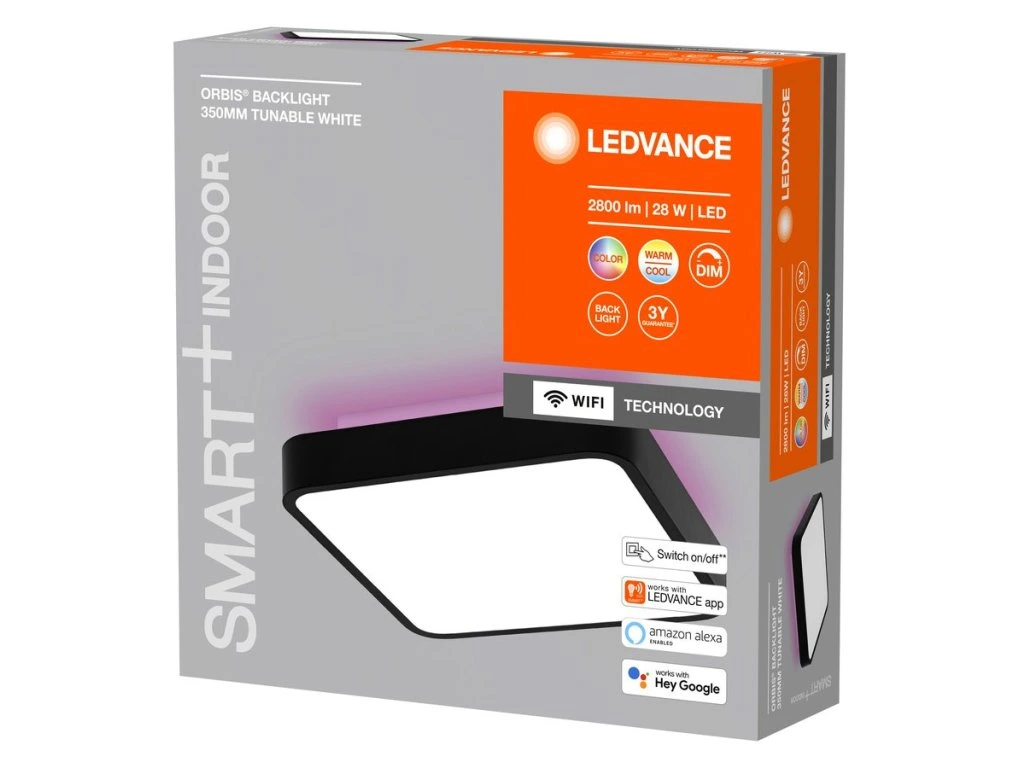 LEDVANCE ORBIS BACKLIGHT stropné svietidlo, 350x350mm, WIFI RGB + stmievateľné, 2800lm, 28W, IP20, čierna AC314100055