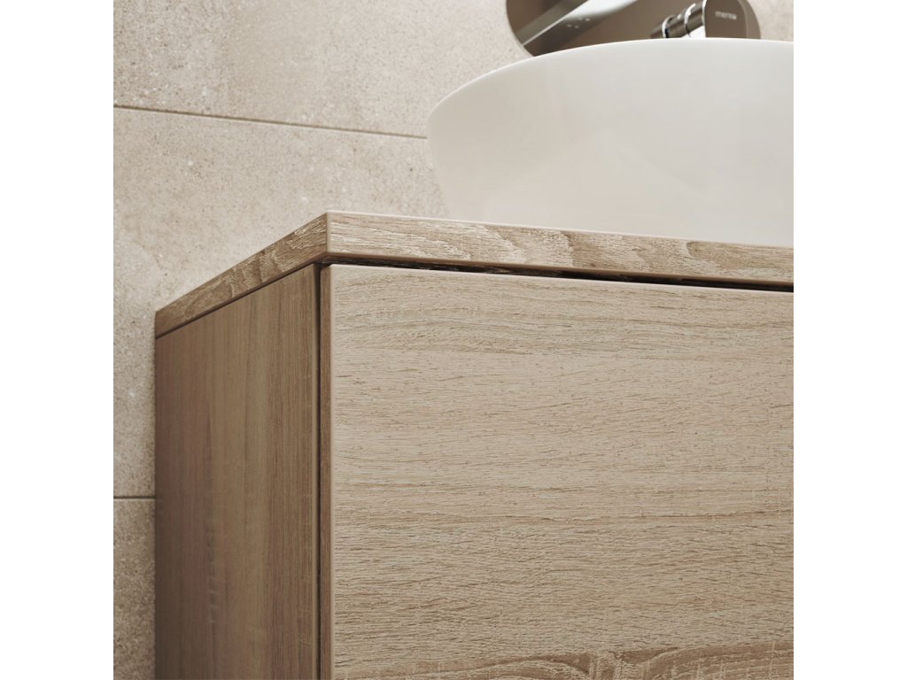 Umožňuje vytvoriť zložité kombinácie do velkých kúpeľní, ako aj minimalistické riešenie v modernom dizajne. Otváranie zásuviek a dvierok je riešené systémom push-open, teda otváranie bez úchytiek. Zásuvky sú osadené kovaním s pomalým dovieraním. Na výber sú štyri farebné možnosti, biela lesk, dub Kronberg, dub Halifax a antracit. Skrinky sú dodávané v zmontovanom stave a všetky sú určené na zavesenie.