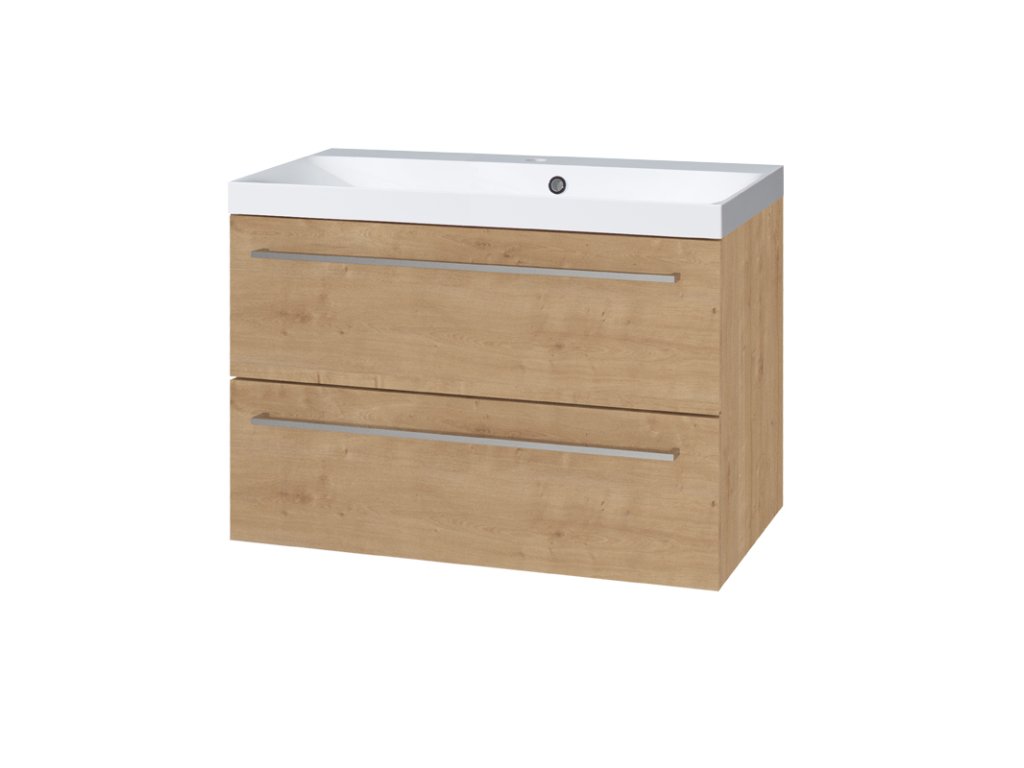 Mereo Bino, kúpeľňová skrinka s umývadlom z liateho mramoru 81 cm, dub Arlington CN621M