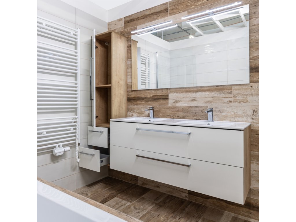 Jednoduchosť, efektívnosť, elegancia. To sú hlavné spoločné menovatele kúpeľňového nábytku Bino, ktorý ozdobí každú kúpeľňu. Vďaka kombinácii inovácií a spoľahlivého prístupu, potom vzniká kvalitný a zároveň veľmi moderný nábytok. Farebné kombinácie zaisťujú, že bude nábytok ladiť do každého typu kúpeľne. Užívateľsky veľmi praktické sú potom dve plnovýsuvné zásuvky so samozatváracími pojazdmi a tlmením Strong. Skrinka sa dodáva v zloženom stave.