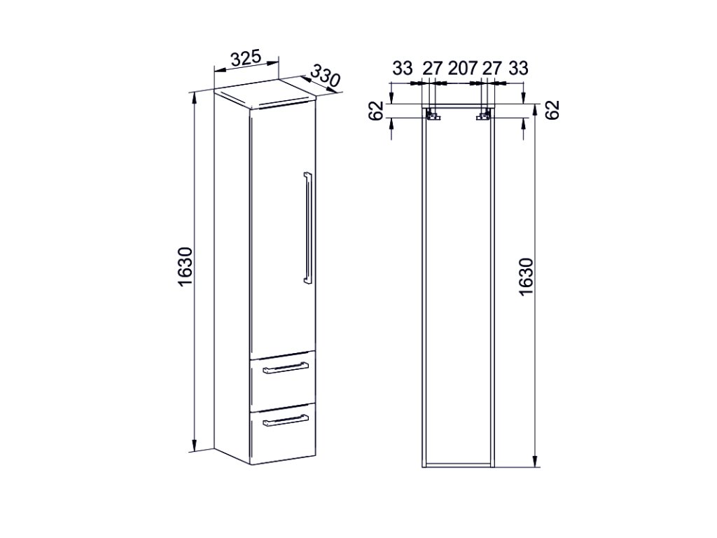 Zákazková výroba, Bino, kúpeľňová skrinka vysoká, 325x1630x330 mm, závesná, pravé otváranie, Multidecor, Šedá antracit