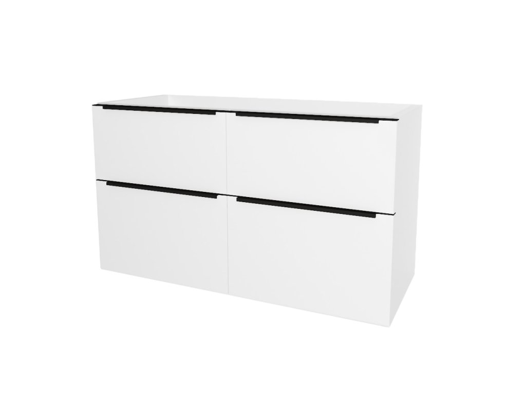 Zákazková výroba, Mailo, kúpeľňová skrinka 1205x700x476 mm, spodná, 4 zásuvky, čierne madlo, Multidecor, Biela vysoký lesk perlička. Možno kombinovať s umývadlom, popr. s kúpeľňovou doskou na skrinku.