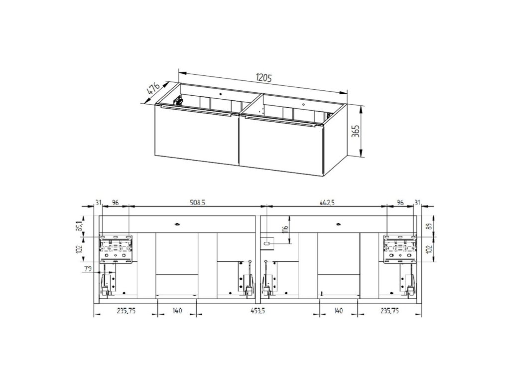 Mailo, kúpeľňová skrinka s umývadlom z liateho mramoru, 1210x415x476 mm, spodná, dub Riviera, 2 zásuvky.